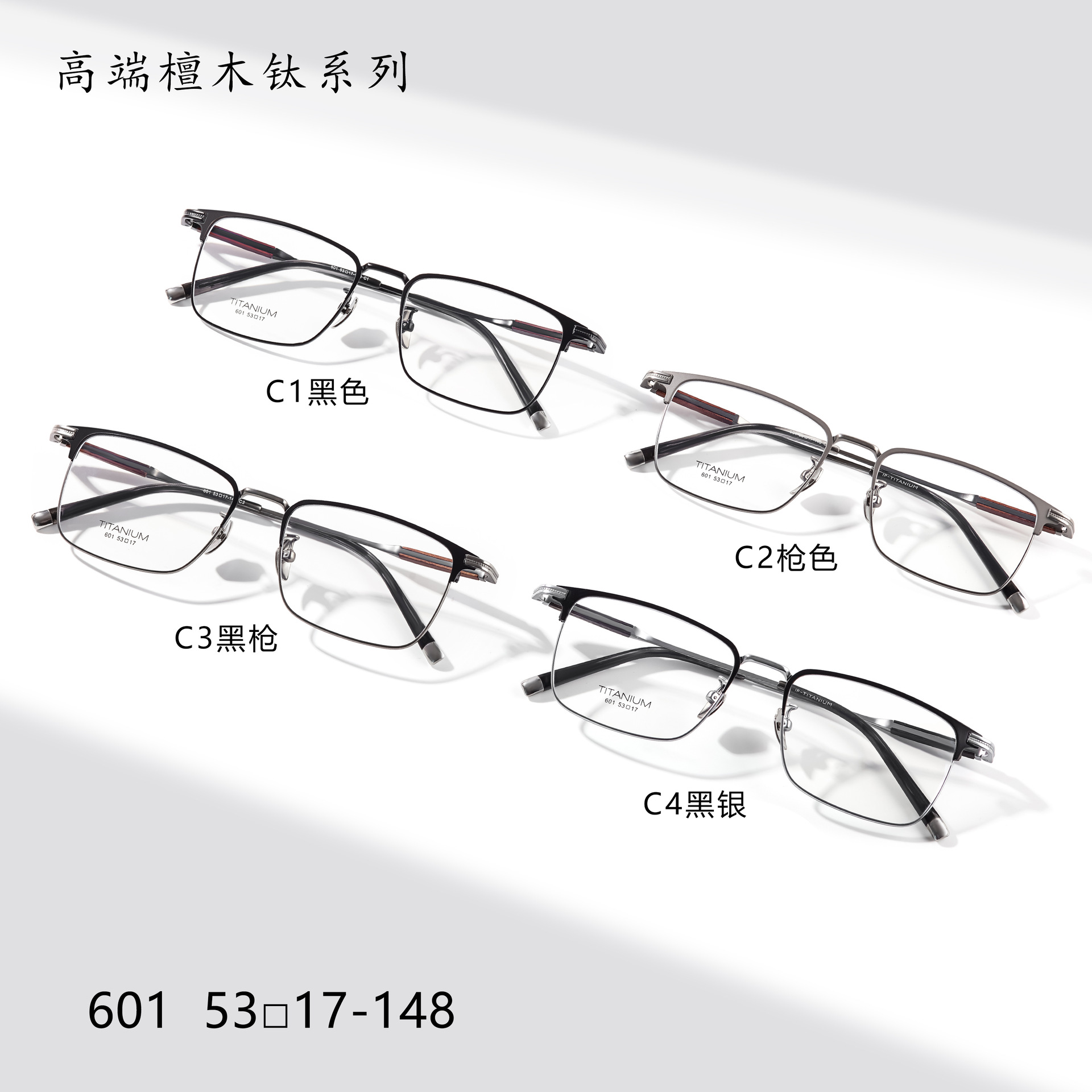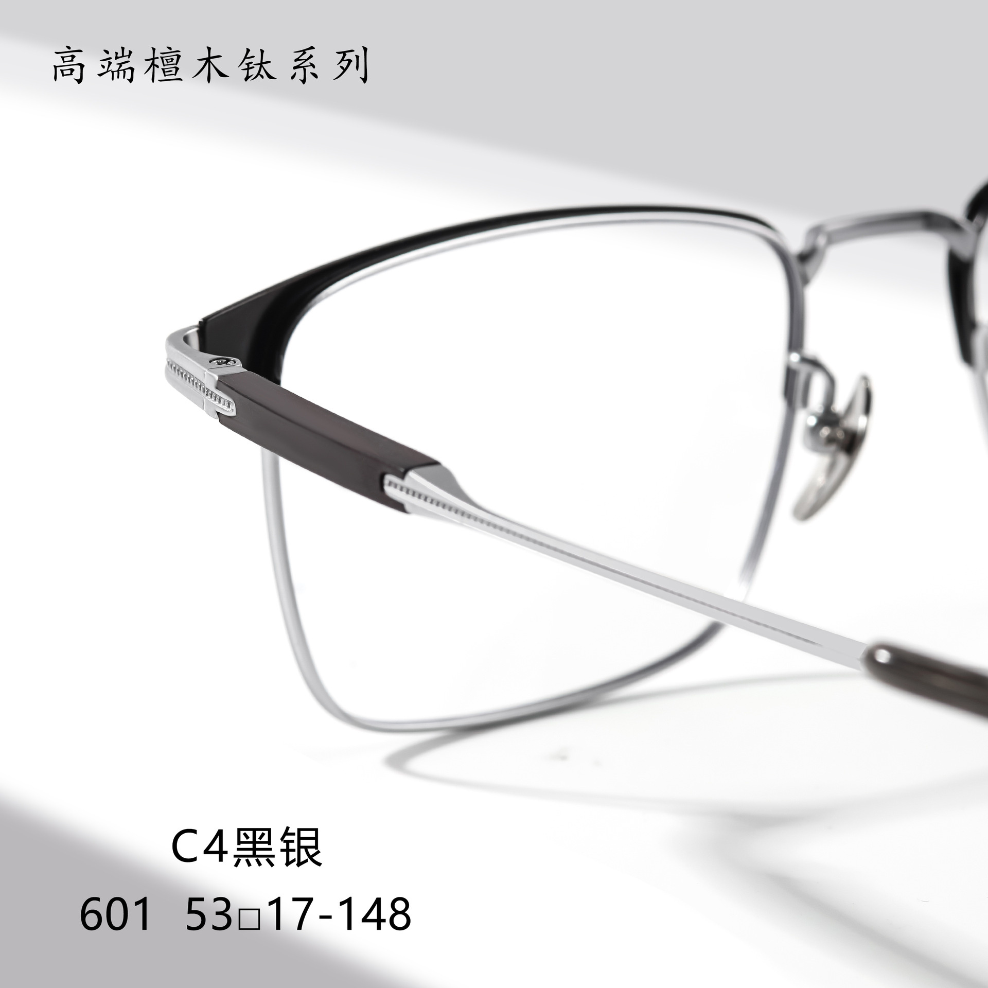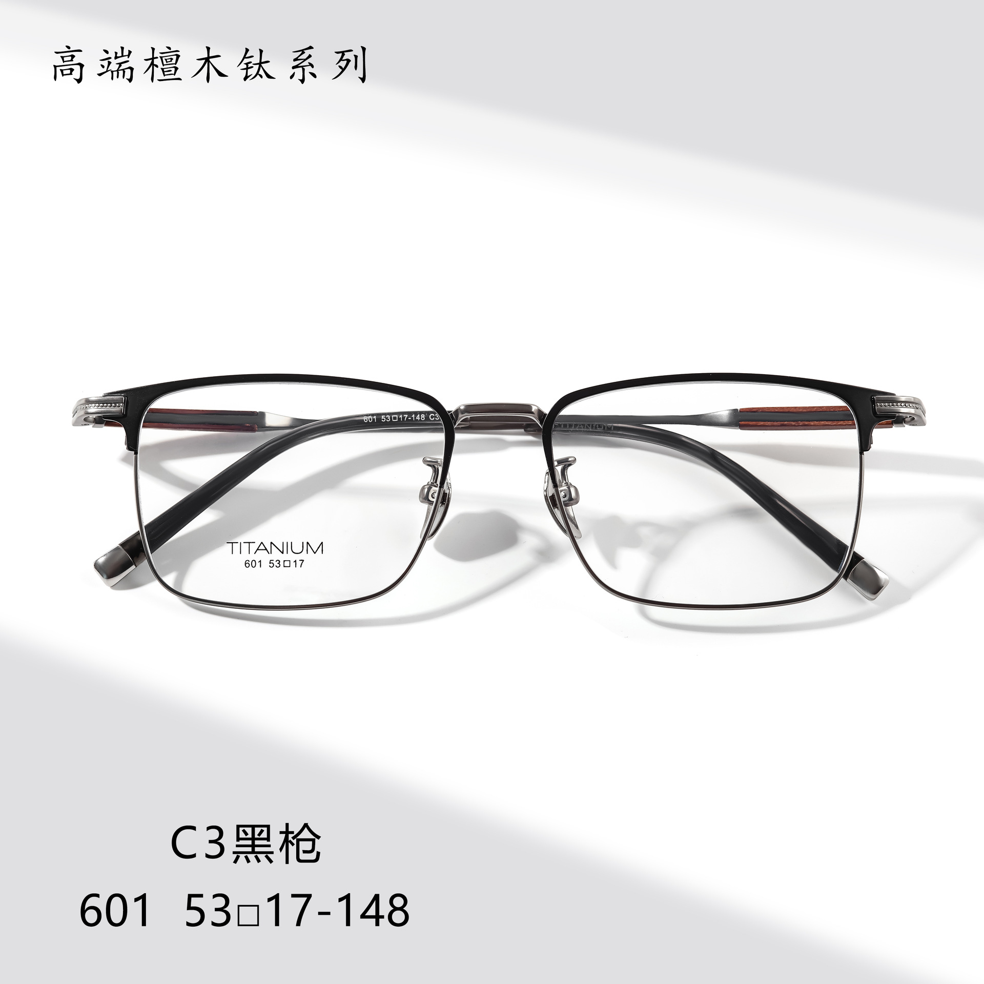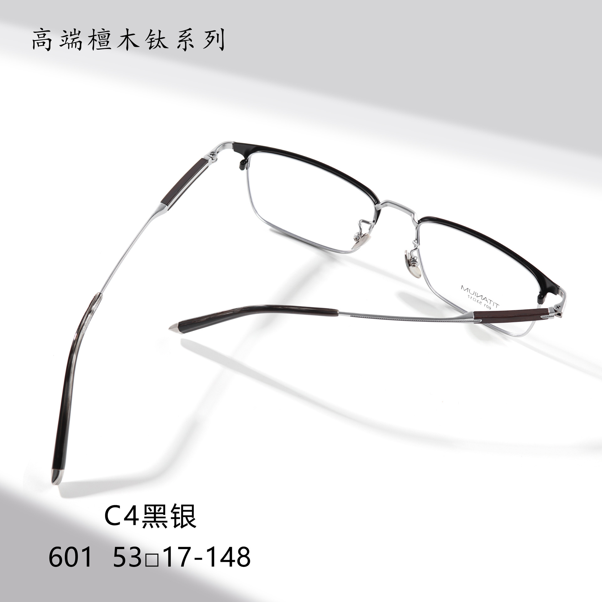 超轻半框眼镜男纯钛檀木腿高端眼镜时尚商务方框丹阳批发601