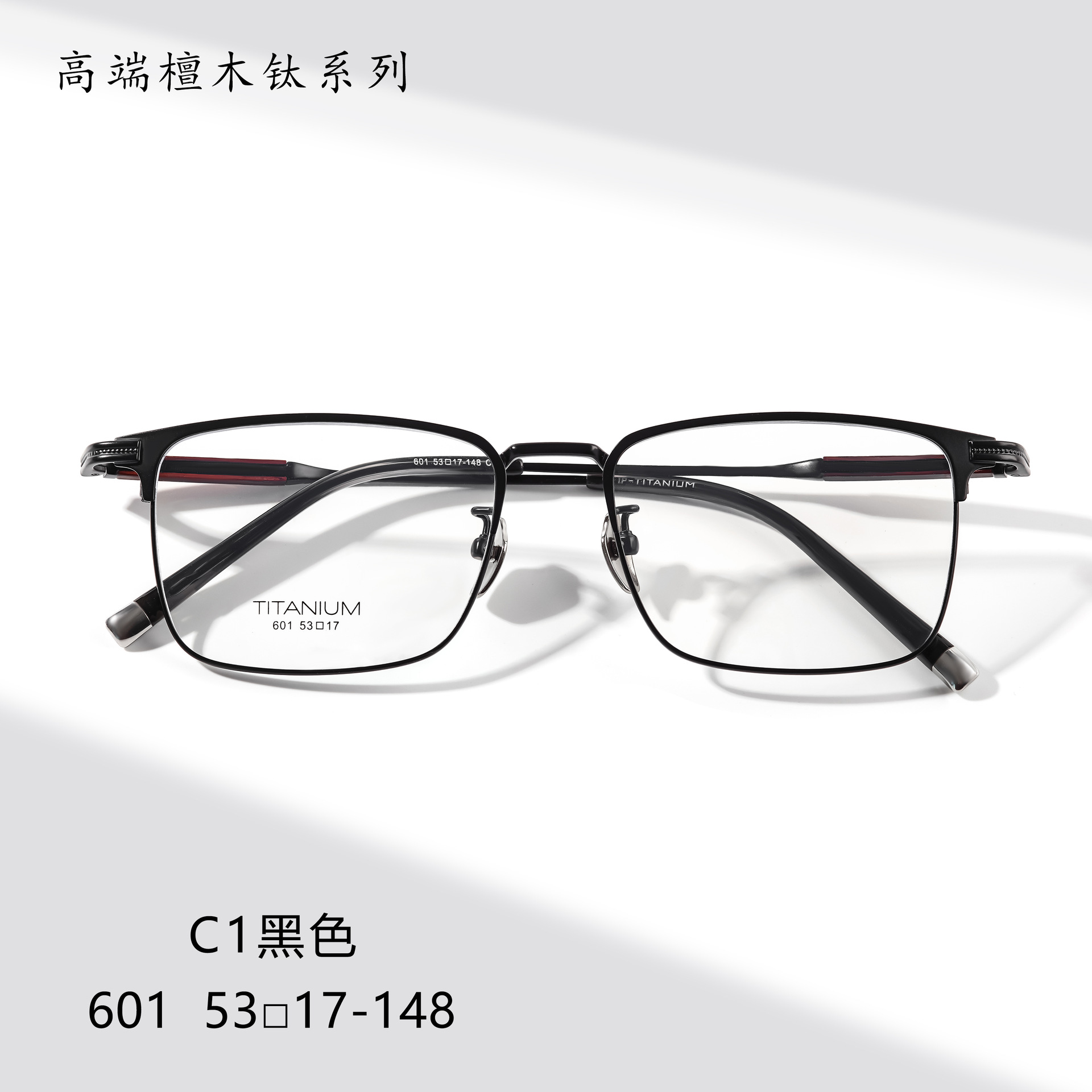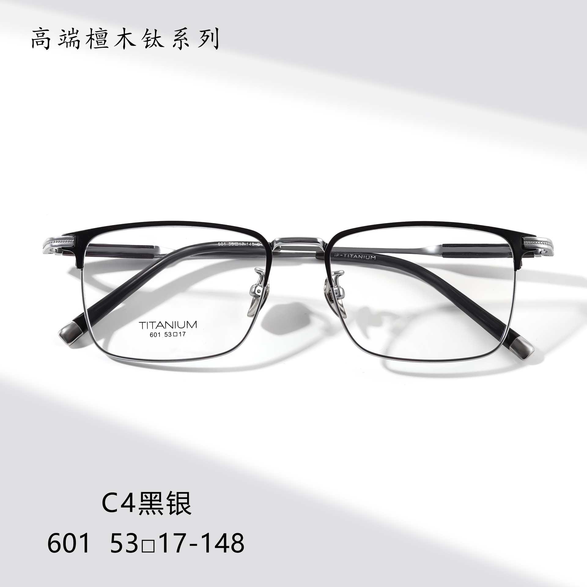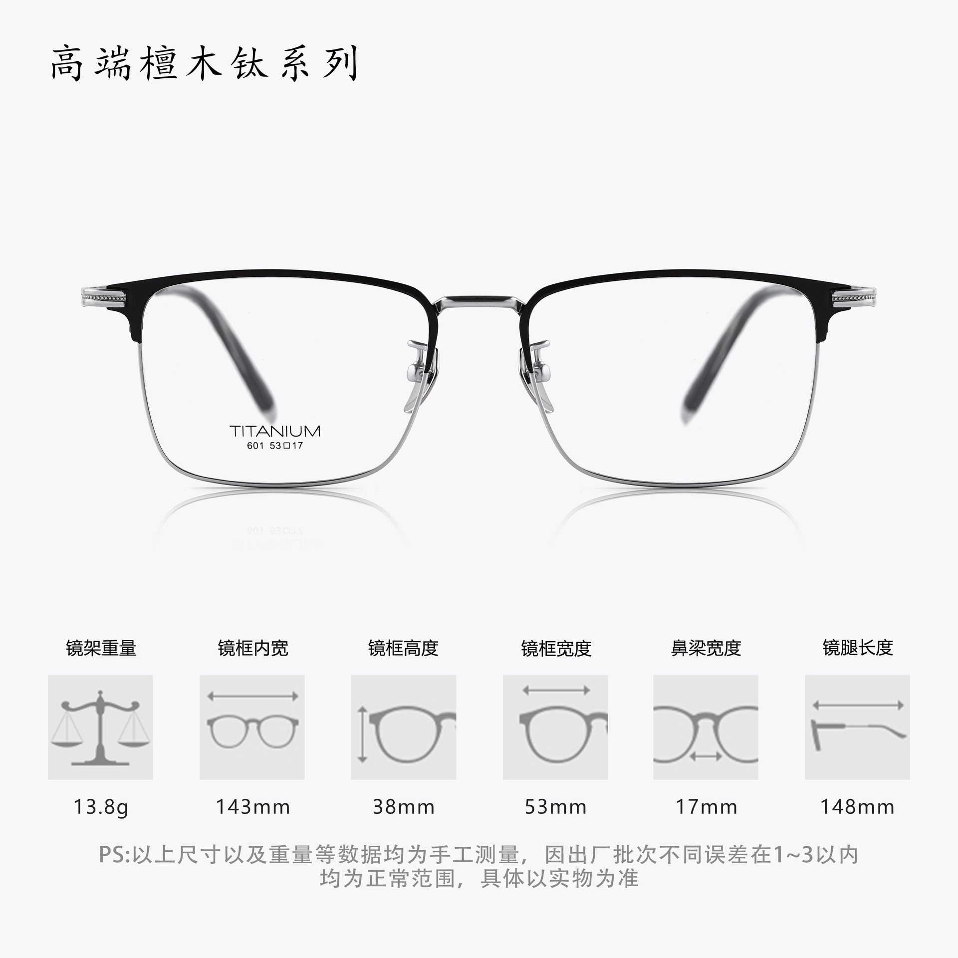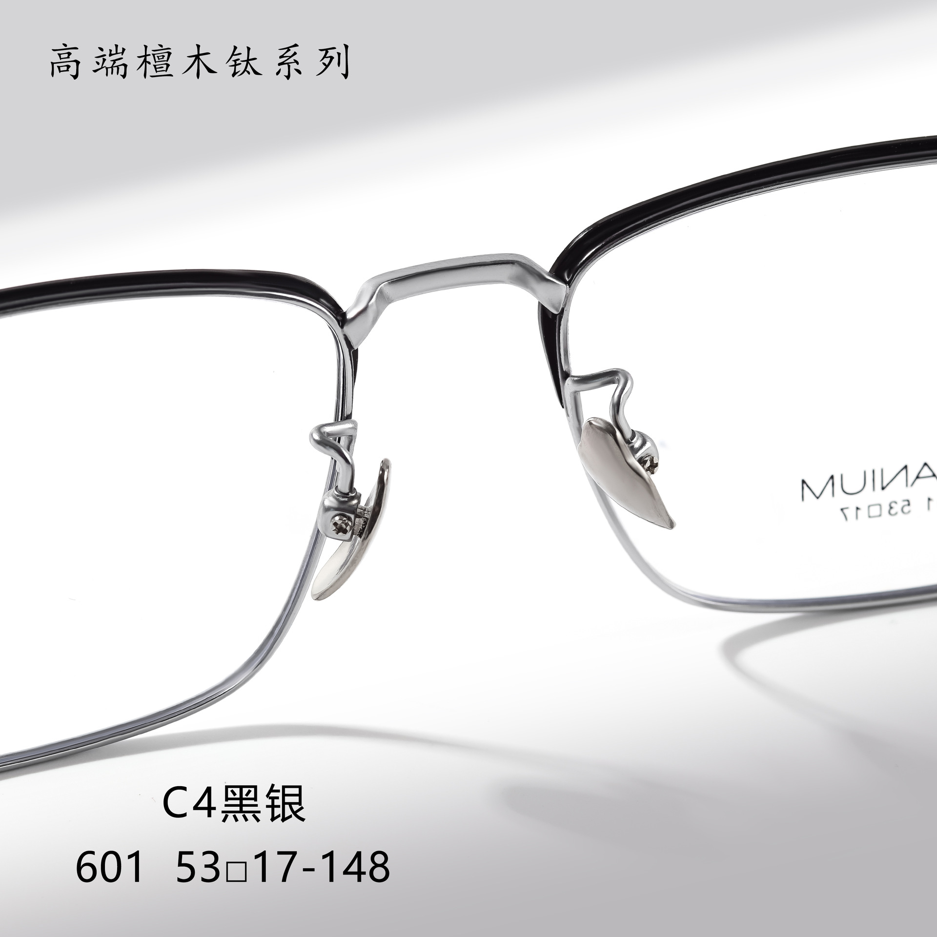 超轻半框眼镜男纯钛檀木腿高端眼镜时尚商务方框丹阳批发601