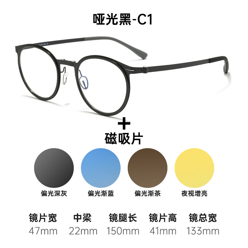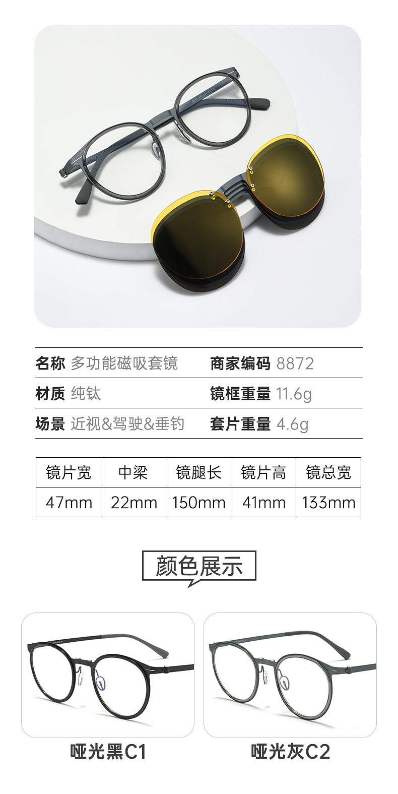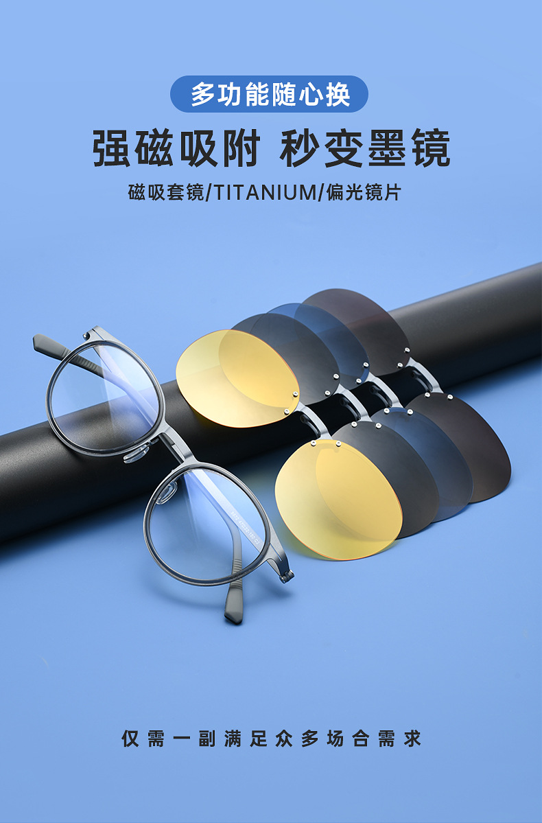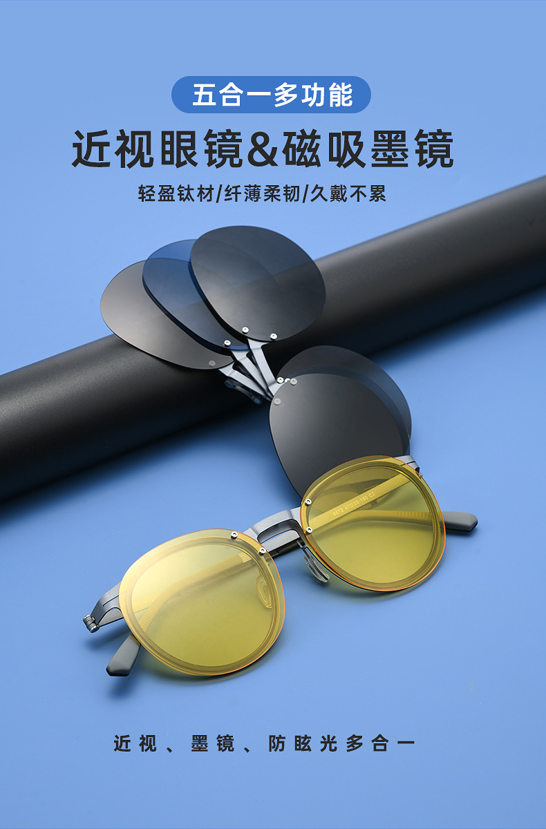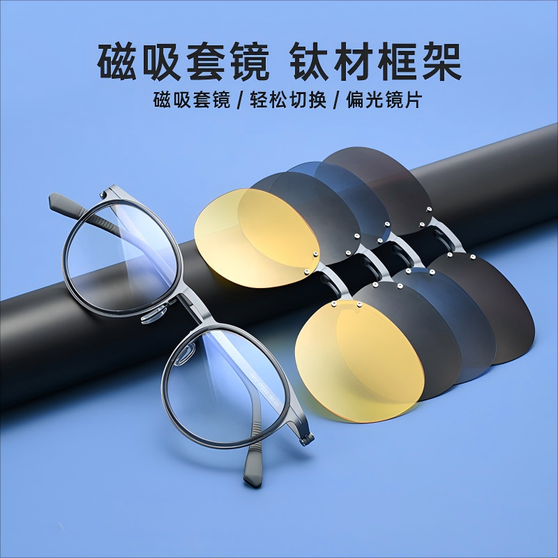 五合一纯钛磁吸偏光太阳镜夹片防眩光日夜两用墨镜女套镜男
