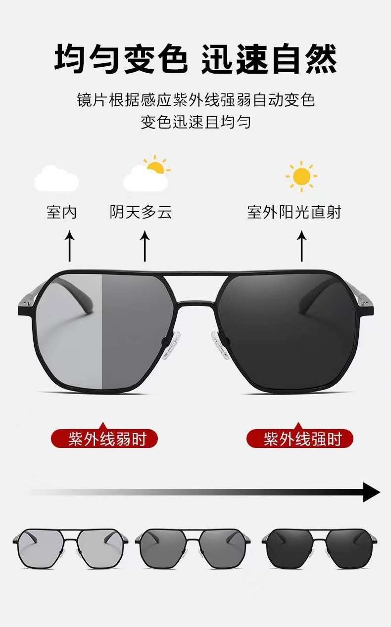 铝镁偏光太阳镜uv400日夜两用变色眼镜户外驾驶男士墨镜高级感