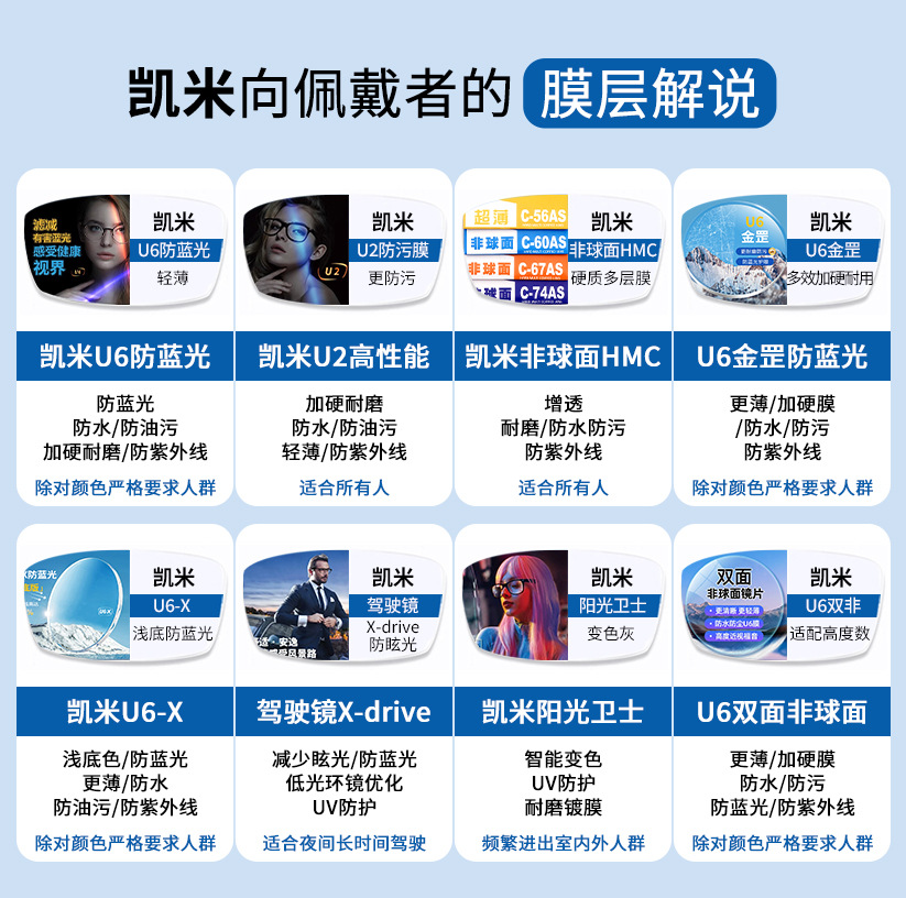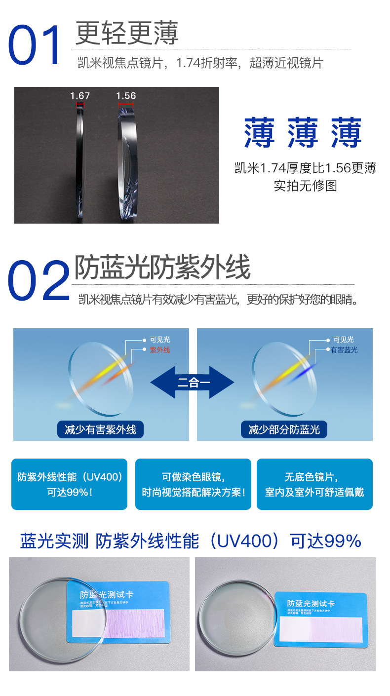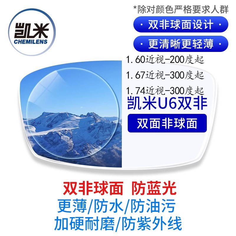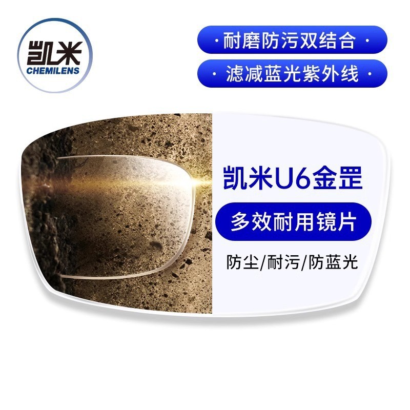 凯米U6金罡防蓝光耐磨变色镜片U2防污1.74非球面近视眼镜丹阳配镜