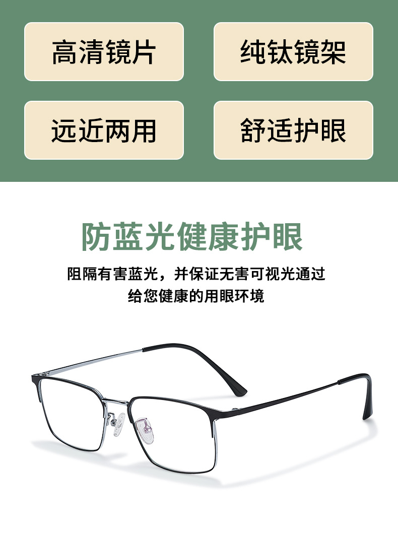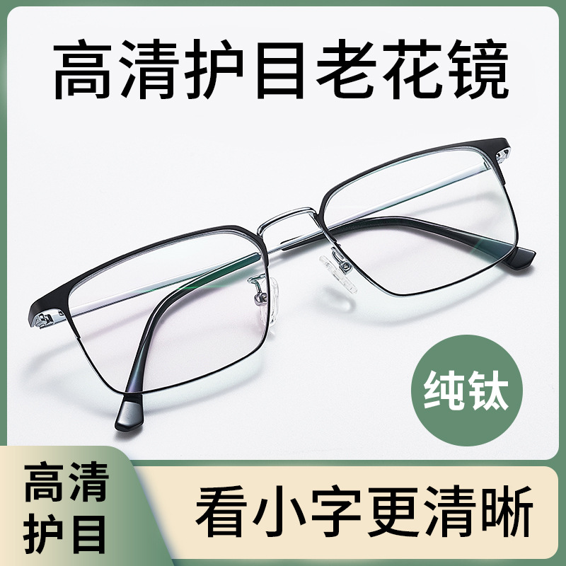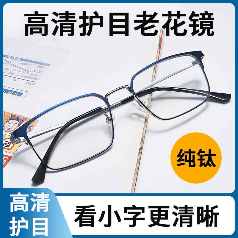 纯钛超轻老花眼镜男中老年人高清防蓝光远近两用老花镜女厂家直发