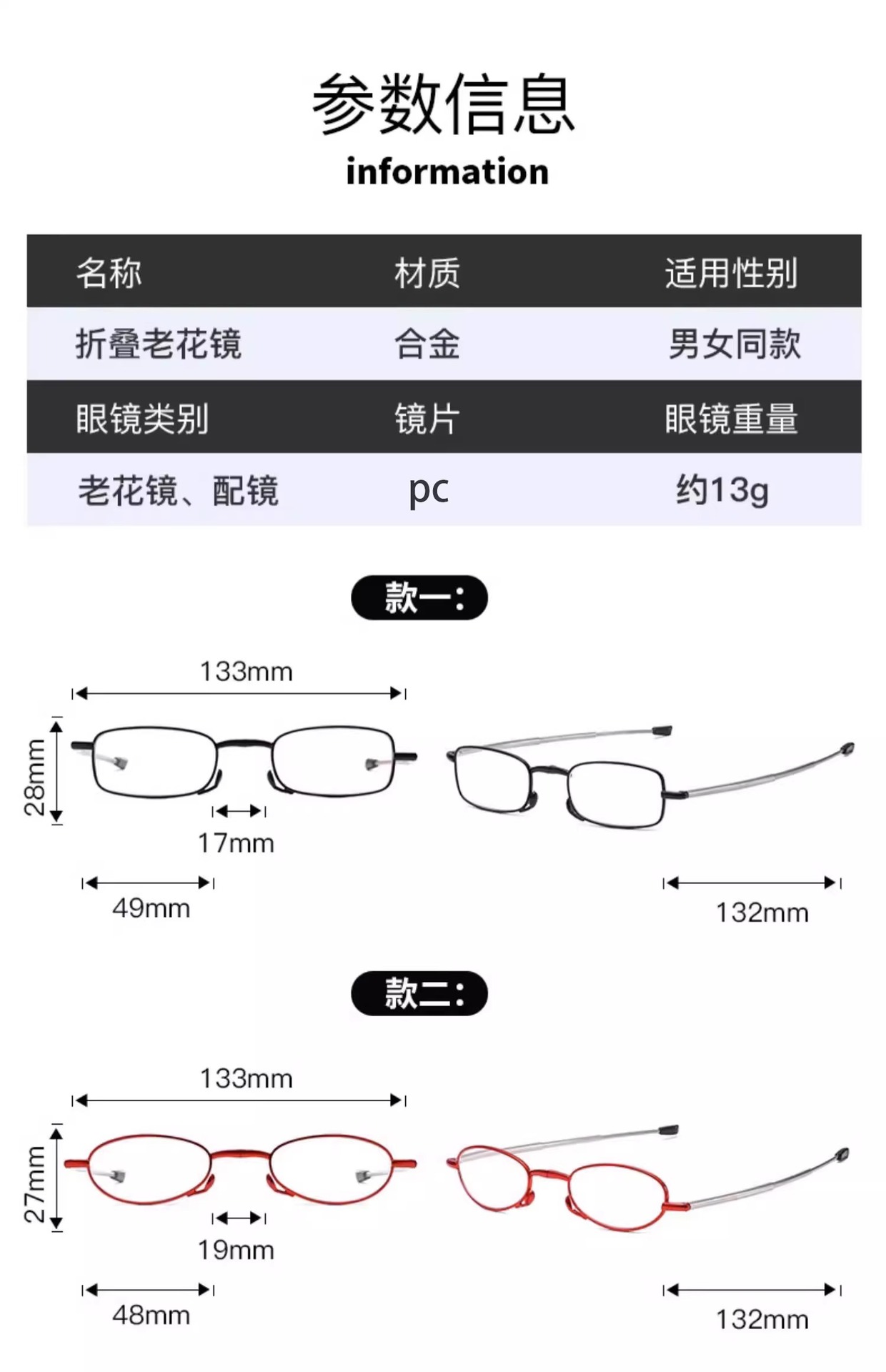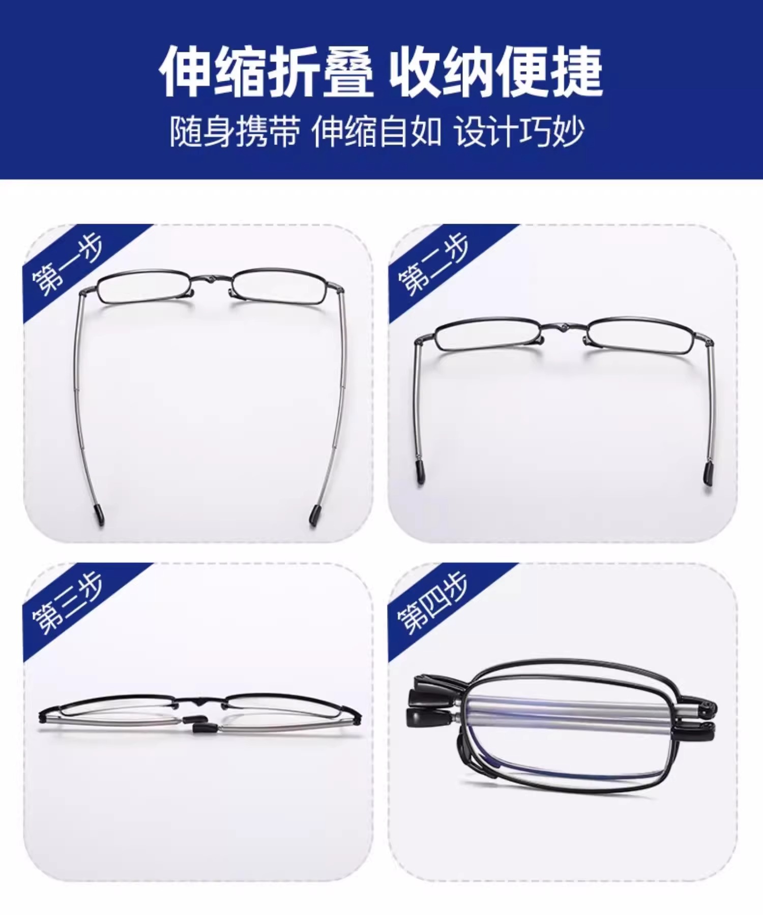 便携迷你老花镜女可折叠高清防蓝光抗疲劳老光镜男高级感老人眼镜