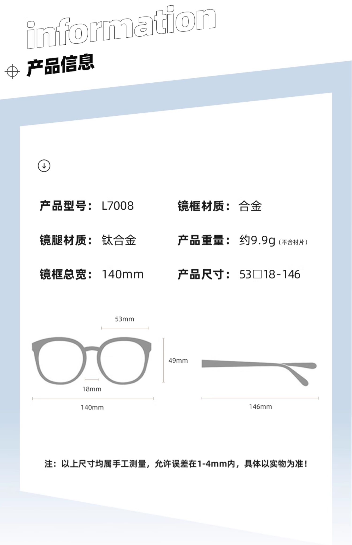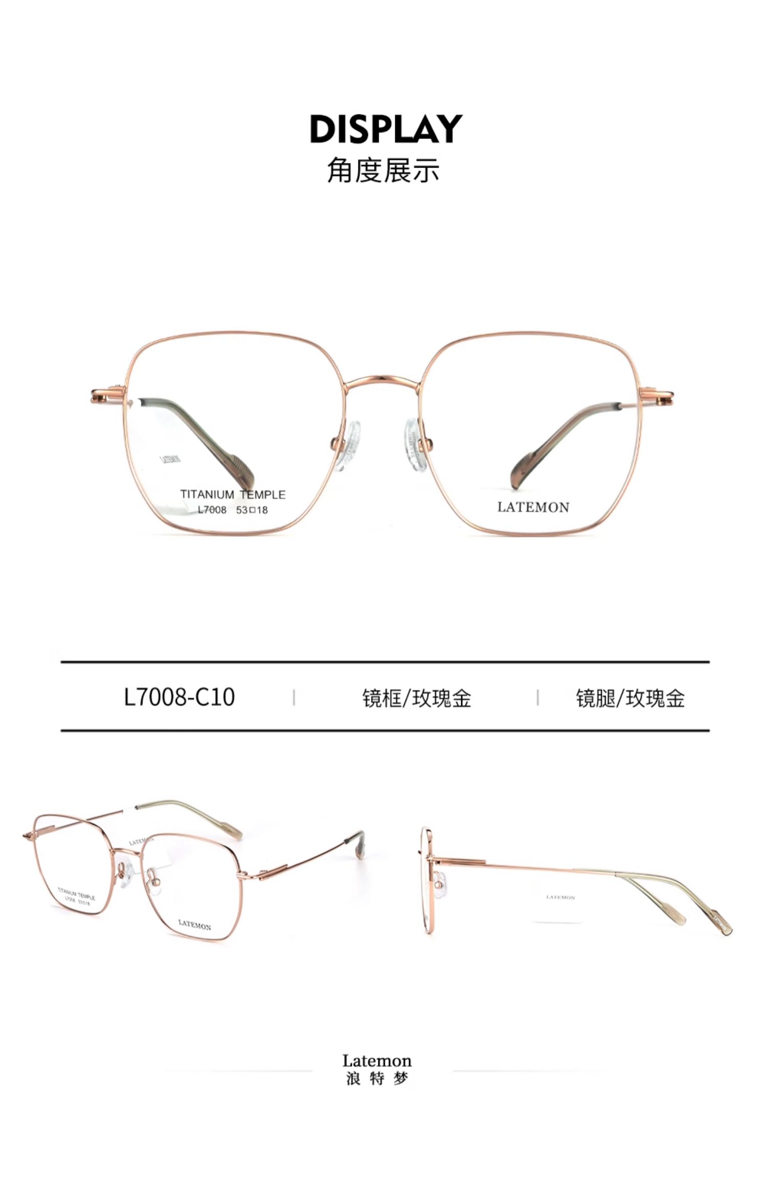 Latemon浪特梦大脸显瘦素颜眼镜女近视眼睛框镜架超轻钛金属7008