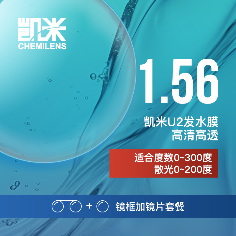 镜框+1.56凯米U6高清高透镜片 0-300度