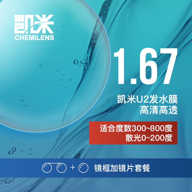 镜框+1.67凯米U2高清高透镜片 300-800度