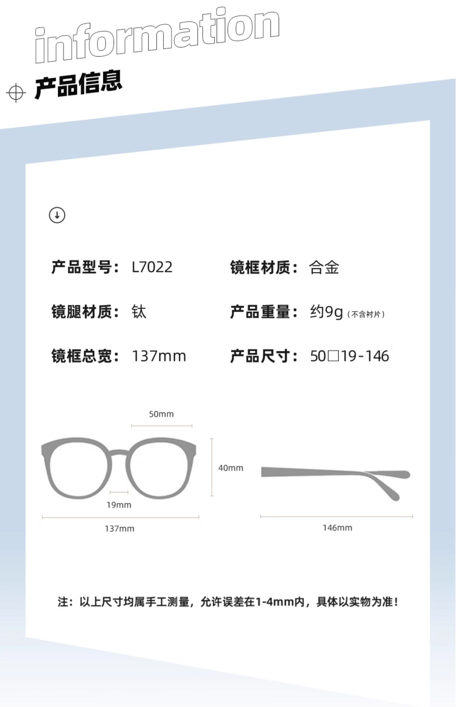 浪特梦超轻光学架女小框钛金属文艺百搭眼镜框男小脸眼睛近视7022