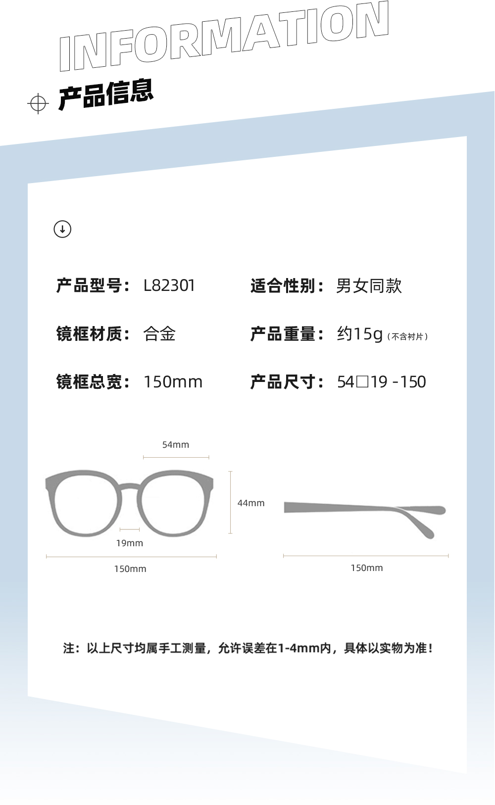 浪特梦周翊然同款眉毛架女素颜防蓝光眼睛架男金属可配度数L82301