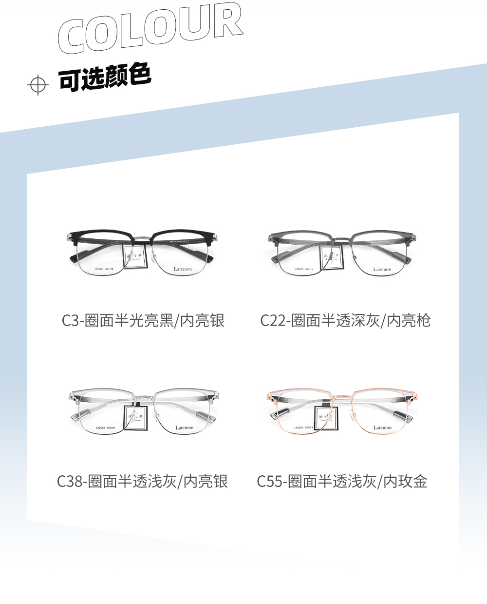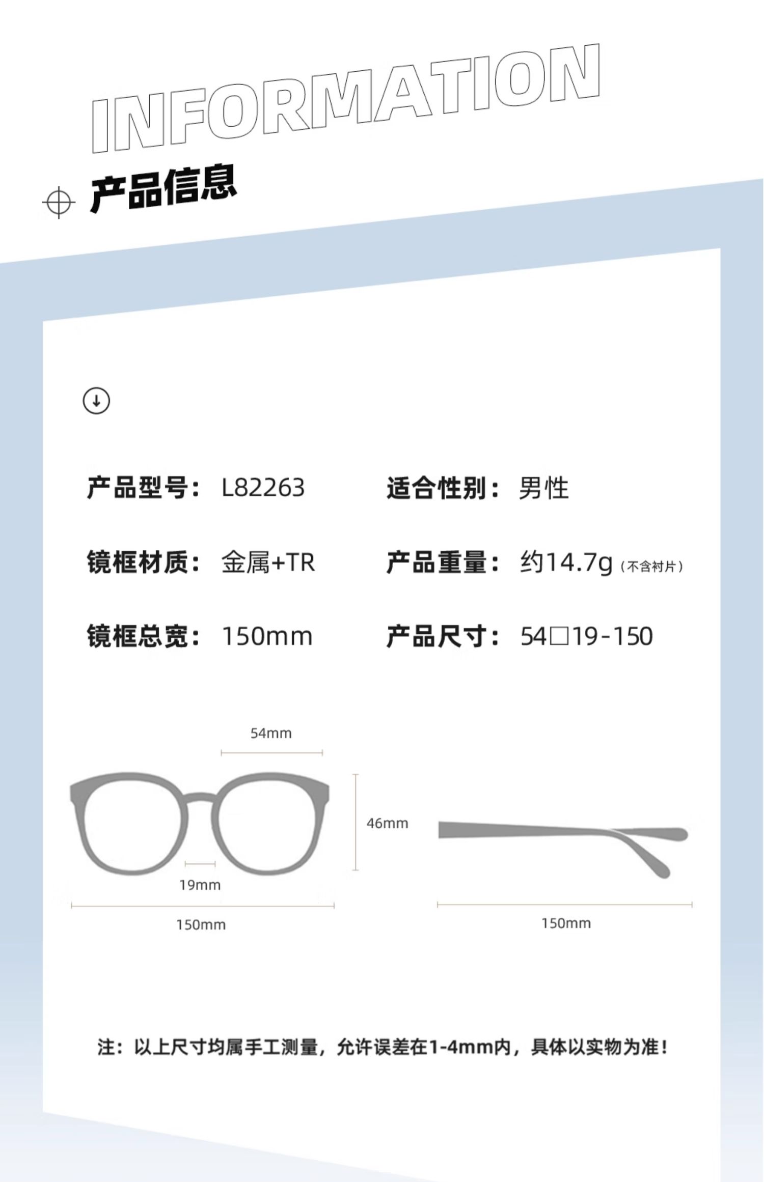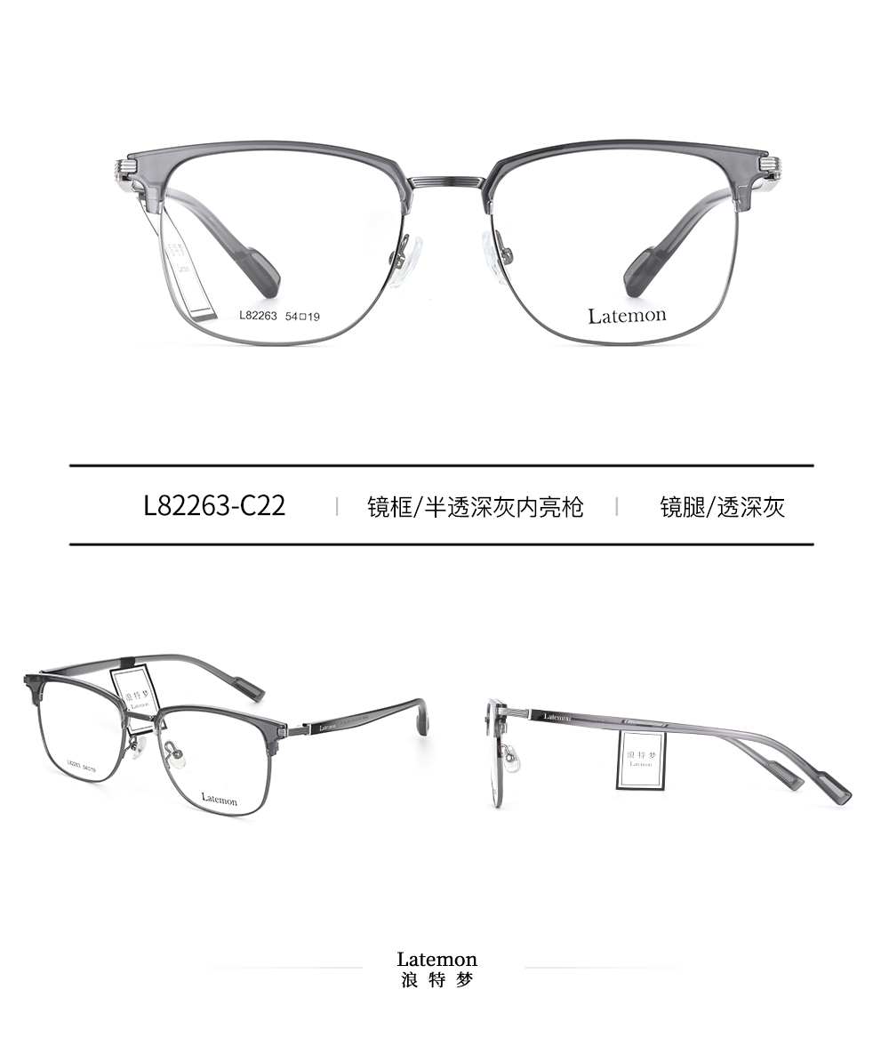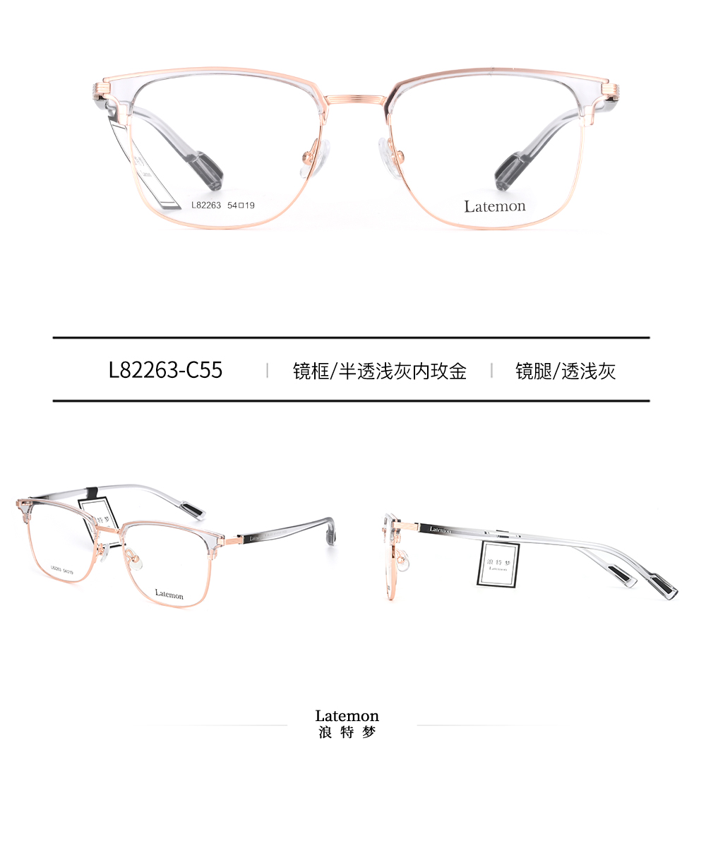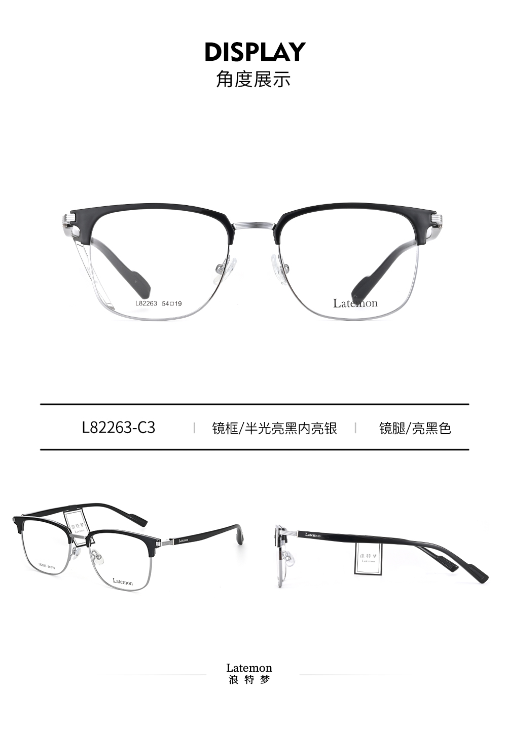 浪特梦新款男光学架眉形框大脸方框可配度数高清素颜眼镜女L82263