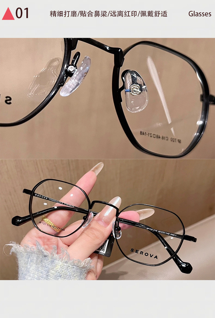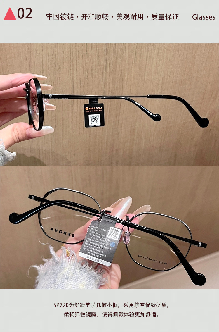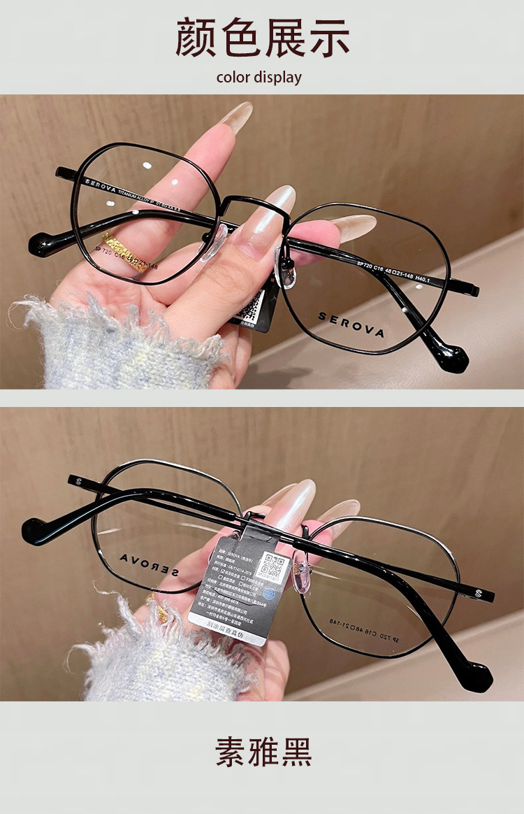 施洛华纯钛眼镜架SP720加厚男女同款眼镜高度数加厚配1.74防蓝光